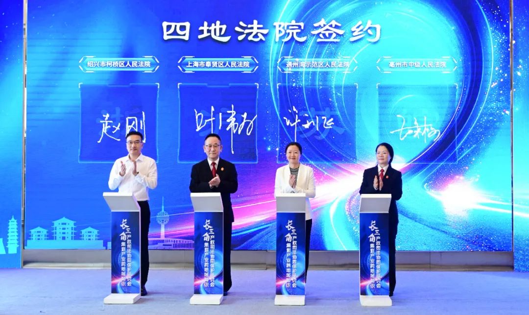 10月22日,长三角集群产业跨地域知识产权司法协同保护研讨会在上海市奉贤区举行。安徽省亳州市中级人民法院和上海市奉贤区人民法院、江苏省南通通州湾江海联动开发示范区人民法院、浙江省绍兴市柯桥区人民法院共签《长三角集群产业跨地域知识产权协同保护工作机制》。